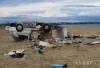 Na snímke prevrátený karavan na pláži v obci Sozopoli v regióne Chalkidiki v severnom Grécku vo štvrtok 11. júla 2019.
