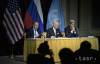 Na snímke zľava ruský minister zahraničia Sergej Lavrov, splnomocnenec OSN pre Sýriu Staffan de Mistura a americký minister zahraničných vecí John Kerry počas tlačovej konferencie po skončení medzinárodných rozhovorov o urovnaní ...