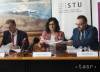 Na snímke zľava rektor Slovenskej Technickej Univerzity (STU) Miroslav Fikar, ministerka školstva, vedy, výskumu a športu SR Martina Lubyová a rektor Univerzity Komenského Marek Števček počas slávnostného podpisu zmluvy o NFP ...
