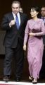 Prezident Mjanmarska Tchin Ťjo a laureátka Nobelovej ceny za mier Aun Schan Su Ťij