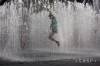 Deti sa ochladzujú vo fontáne v záhradách Trocadero pred Eiffelovou vežou 25. júna 2019 v Paríži.