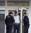 Na snímke polícia odvádza muža, ktorý bodal nožom otca svojej družky.