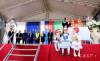 Slávnostný začiatok razenia tunela Višňové. Na snímke sochy sv. Barbory, patrónky baníkov, posvätil generálny vikár Žilinskej diecézy Ladislav Stromček (vpravo). Višňové, 9. júna 2015.