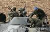 Tureckí vojaci sedia na obrnenom transportéri počas hliadkovania.