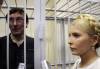 Bývalý ukrajinský minister vnútra Jurij Lucenko v klietke pre obžalovaných, pri ňom stojí bývalá premiérka Julija Tymošenková na súdnom pojednávaní v Kyjeve 23. mája 2011. Lucenko je obvinený zo zneužitia právomocí.Foto: ...
