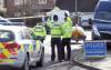 Policajti hliadkujú neďaleko domu bývalého ruského špióna Sergeja Skripaľa 8. marca 2018 v Salisbury.