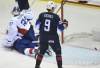 Na snímke vľavo brankár Sebastian Ylönen (Francúzsko) inkasuje gól v zápase základnej A-skupiny USA- Francúzsko na 83. majstrovstvách sveta v ľadovom hokeji v Košiciach 12. mája 2019. Vpravo sa teší americký hokejista Jack Eichel. ...