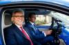 Pri príležitosti Svetového dňa Zeme odovzdal kľúče od elektromobilu Volkswagen e-Up! ministrovi životného prostredia SR Petrovi Žigovi (vpravo) člen predstavenstva pre personálnu oblasť spoločnosti Volkswagen Slovakia, a.s., Eric ...