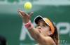 Americká tenistka Nicole Gibbsová podáva proti Juhokórejčanke Jang Su-jeongovej v 1. kole tenisového turnaja WTA Korea Open v Soule 19. septembra 2017.