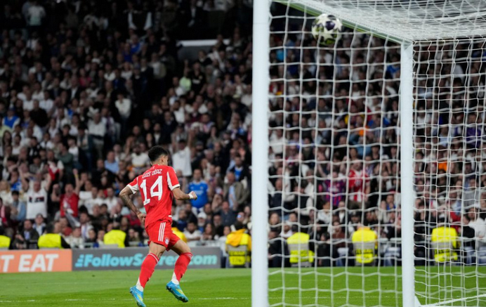 Na štadióne Santiaga Bernabeua mal v prvom polčase Bayern veľkú šancu už v úvode, ale Upamecano loptu do siete nedostal. Na opačnej strane pohrozil Mbappe, Neuer ho však vychytal. Potom sa dostali k slovu opäť hráči nemeckého majstra, keď Pitarch urobil hrubú chybu, ale Gnabry špičkou kopačky mieril len do pravého ramena brankára Lunina. Neuer potom opäť zabránil pohrome po akcii Mbappeho a na konci polčasu už Bavori udreli. Gnabry kolmým pasom medzi obrancov poslal loptu na Diaza a ten skóroval - 0:1.