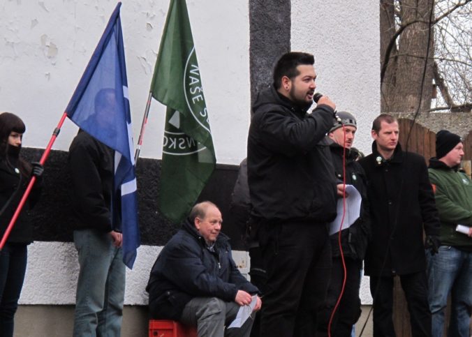 Slovenská pospolitosť Jakubom Škrabákom obžalovaným z extrémizmu.