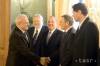 Na snímke zľava prezident SR Ivan Gašparovič, predstavitelia zamestnávateľských zväzov, predseda Klubu 500 Vladimír Soták, predseda SOPK Peter Mihók a prezident RÚZ Marián Jusko.