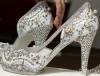 Topánky , ktoré sú súčasťou modelu pre nevestu sú vystavené počas pokusu o zápis do Guinnessovej knihy rekordov pre svadobný model ozdobený 43 008 kusmi Swarowskiho perlami a kryštálikmi 24. marca 2010 v Bukurešti. Model vážiaci ...