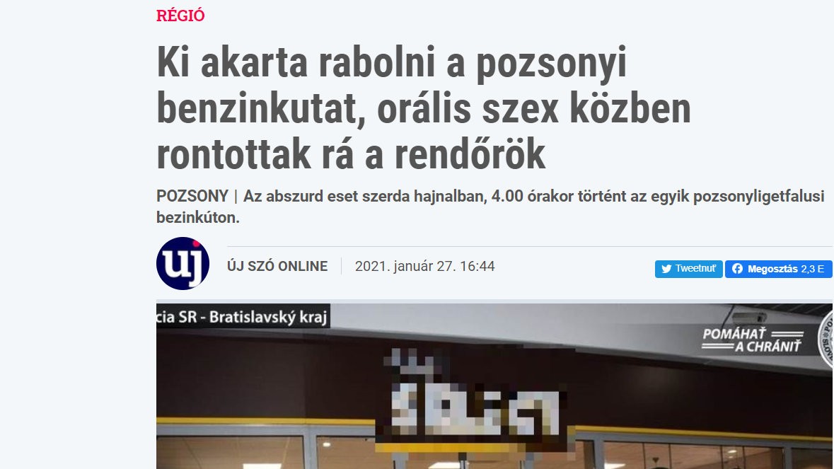 Šokujúci prípad z čerpačky sa dostal aj na maďarské portály. Jeden z najznámejších ujszo.com uvádza v titulku: "Chcel prepadnúť bratislavskú čerpaciu stanicu, policajti ho prichytili pri orálnom sexe."